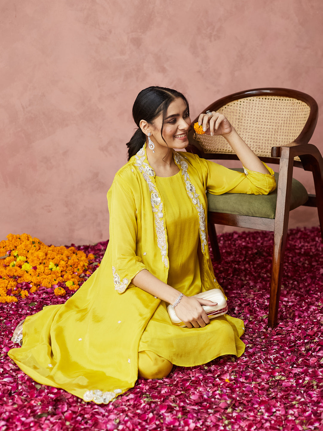 Sunshine Yellow Embroidered Palazzo Set with shrug
