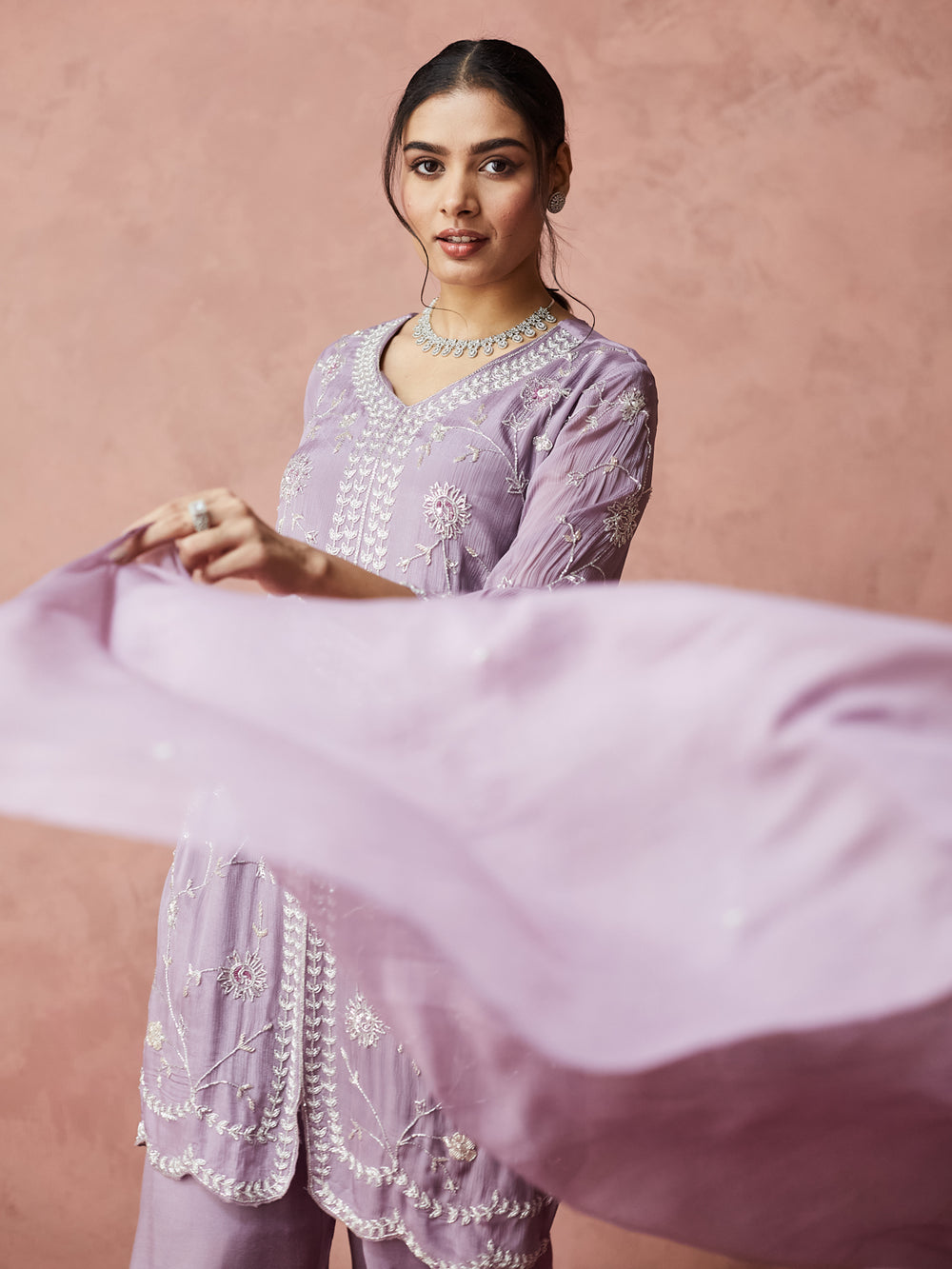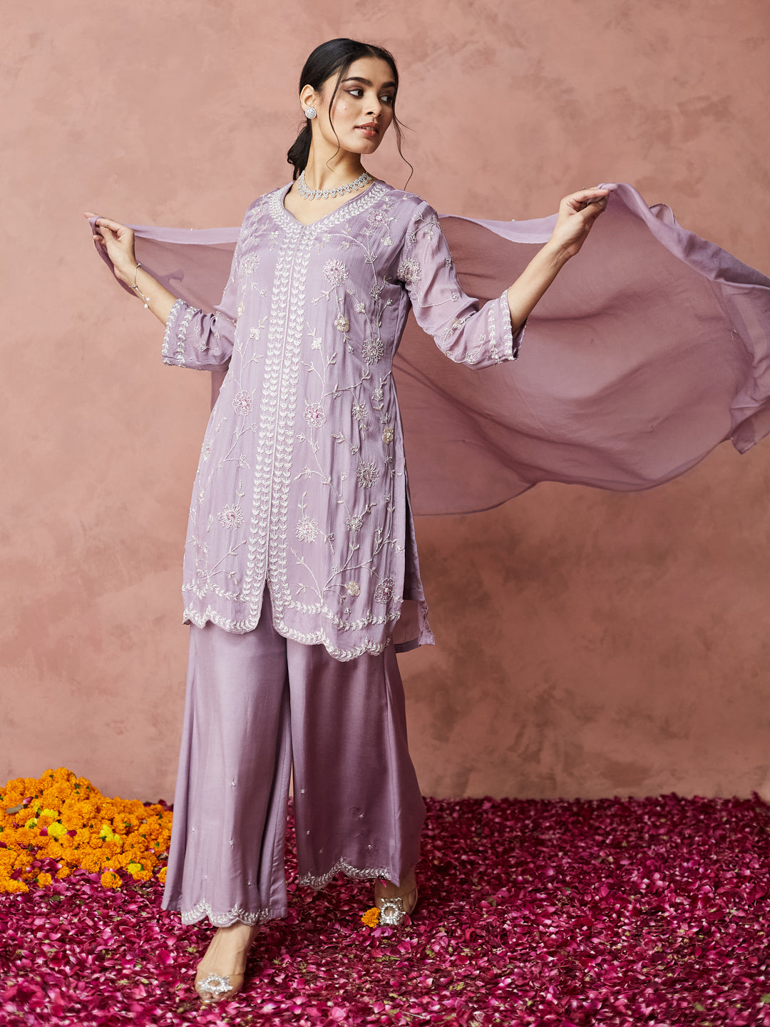 Lavender Elegance Hand work Palazzo Set with dupatta