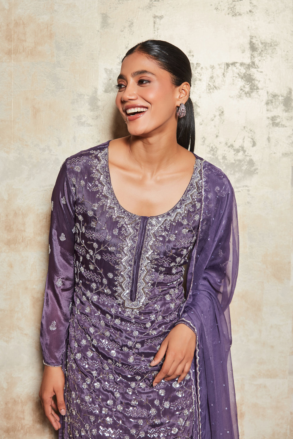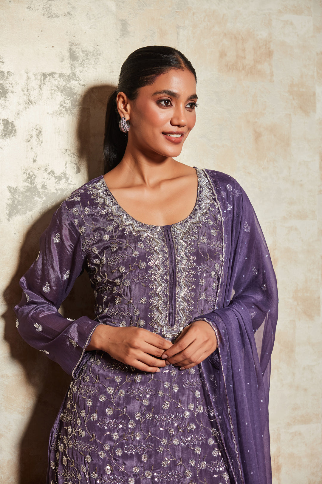PURE CREPE PURPLE SHARARA SET WITH EMBROIDERY