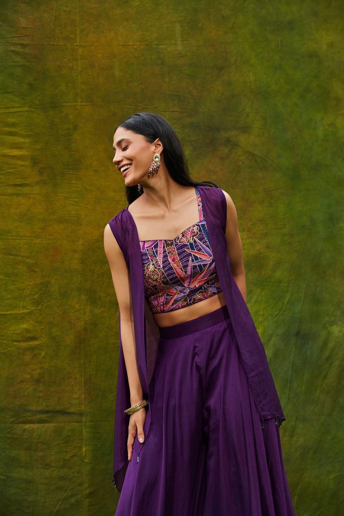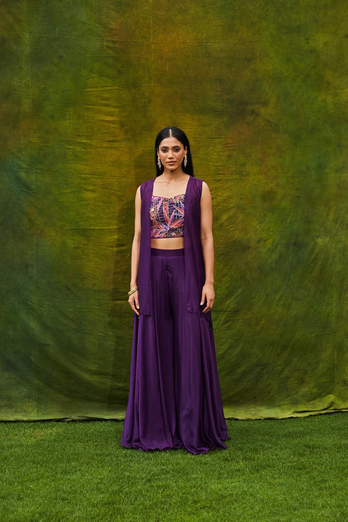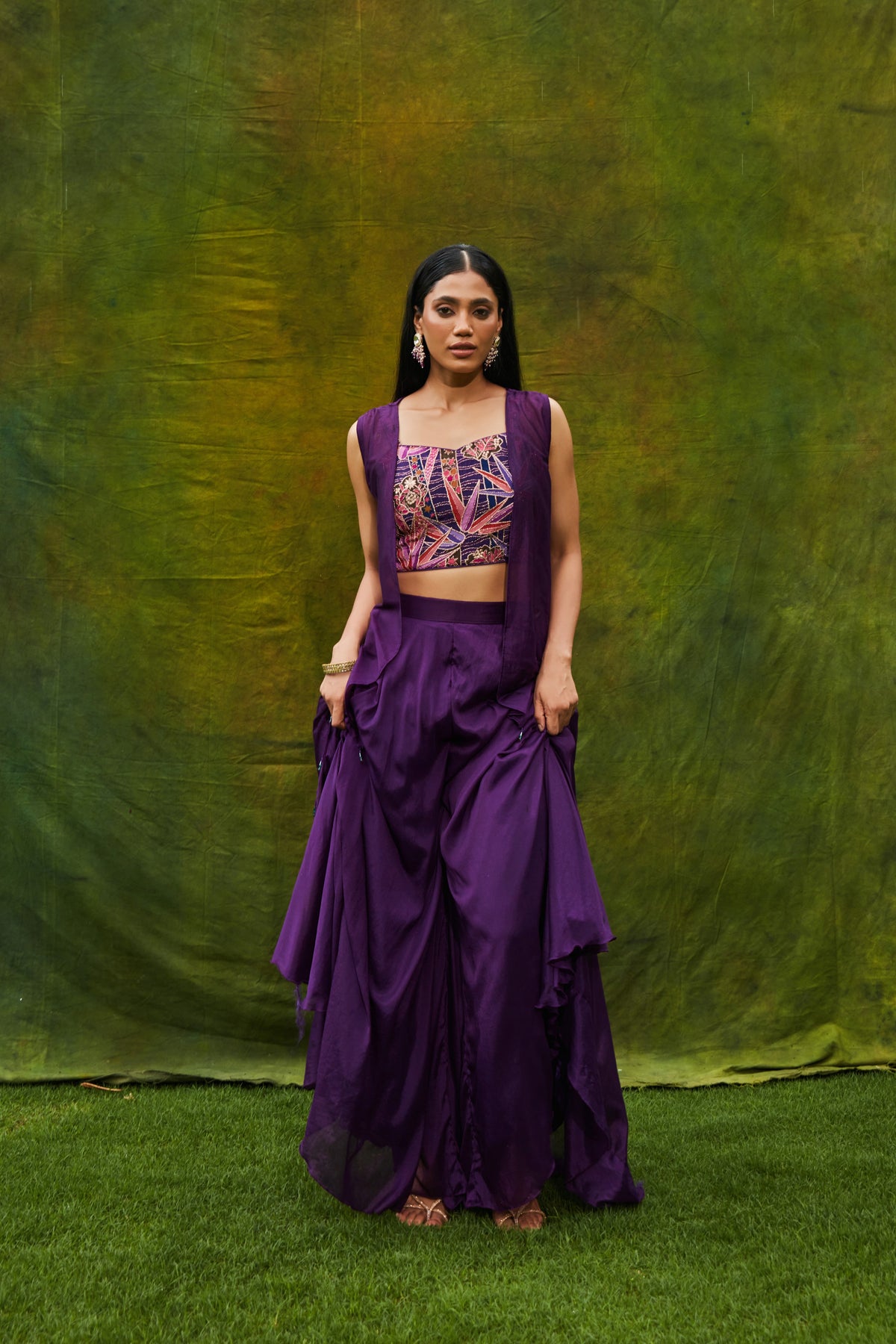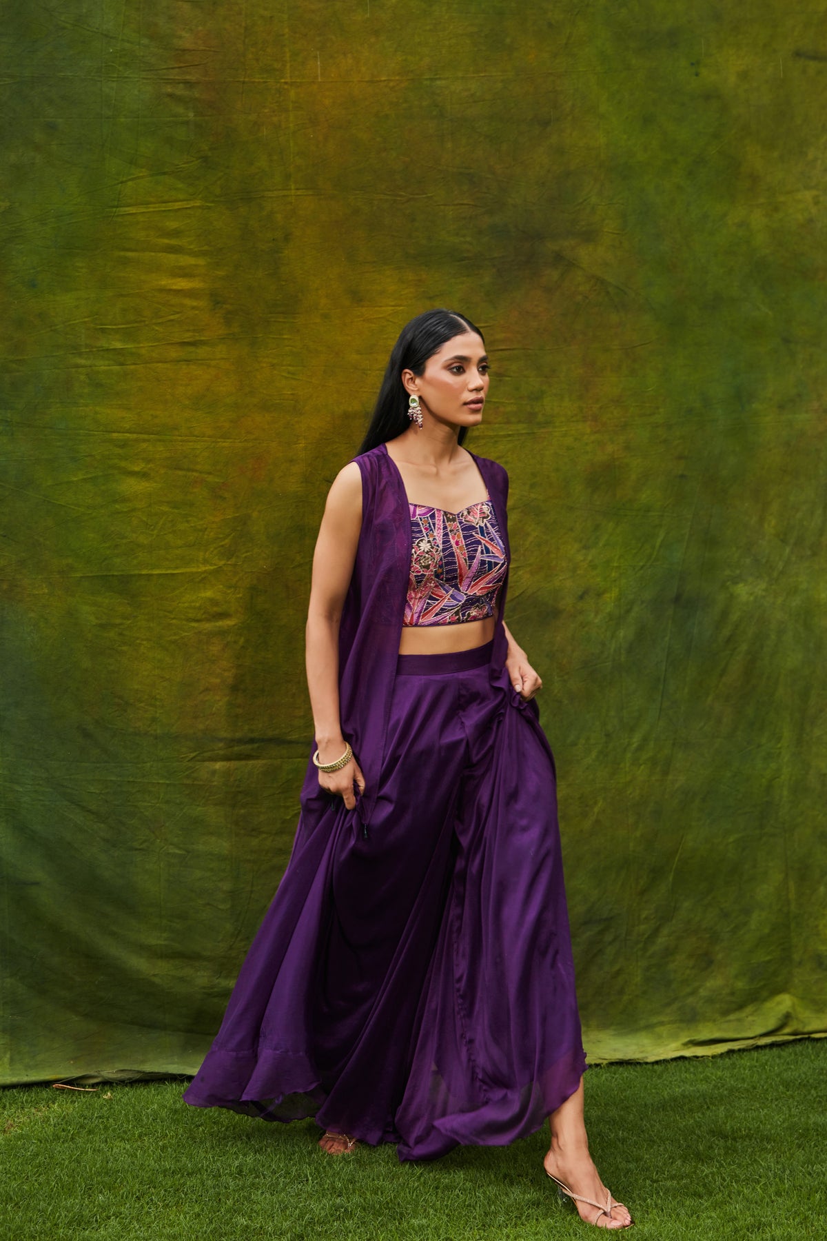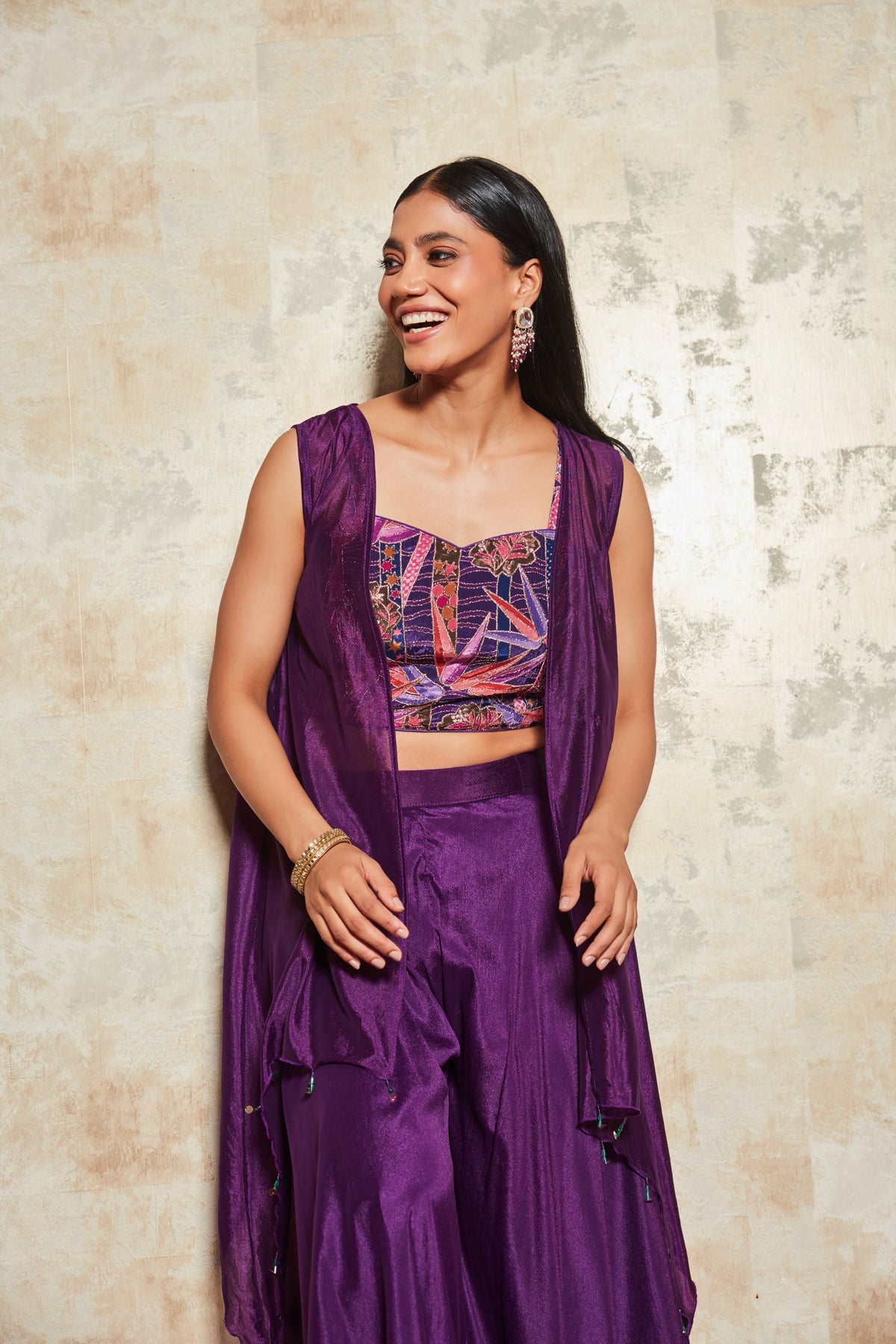 PLUM EMBELLISHED DIVIDER SET WITH SHRUG