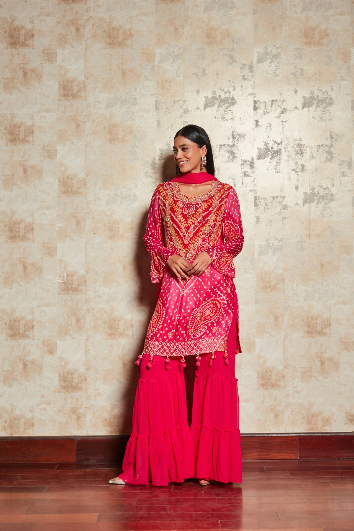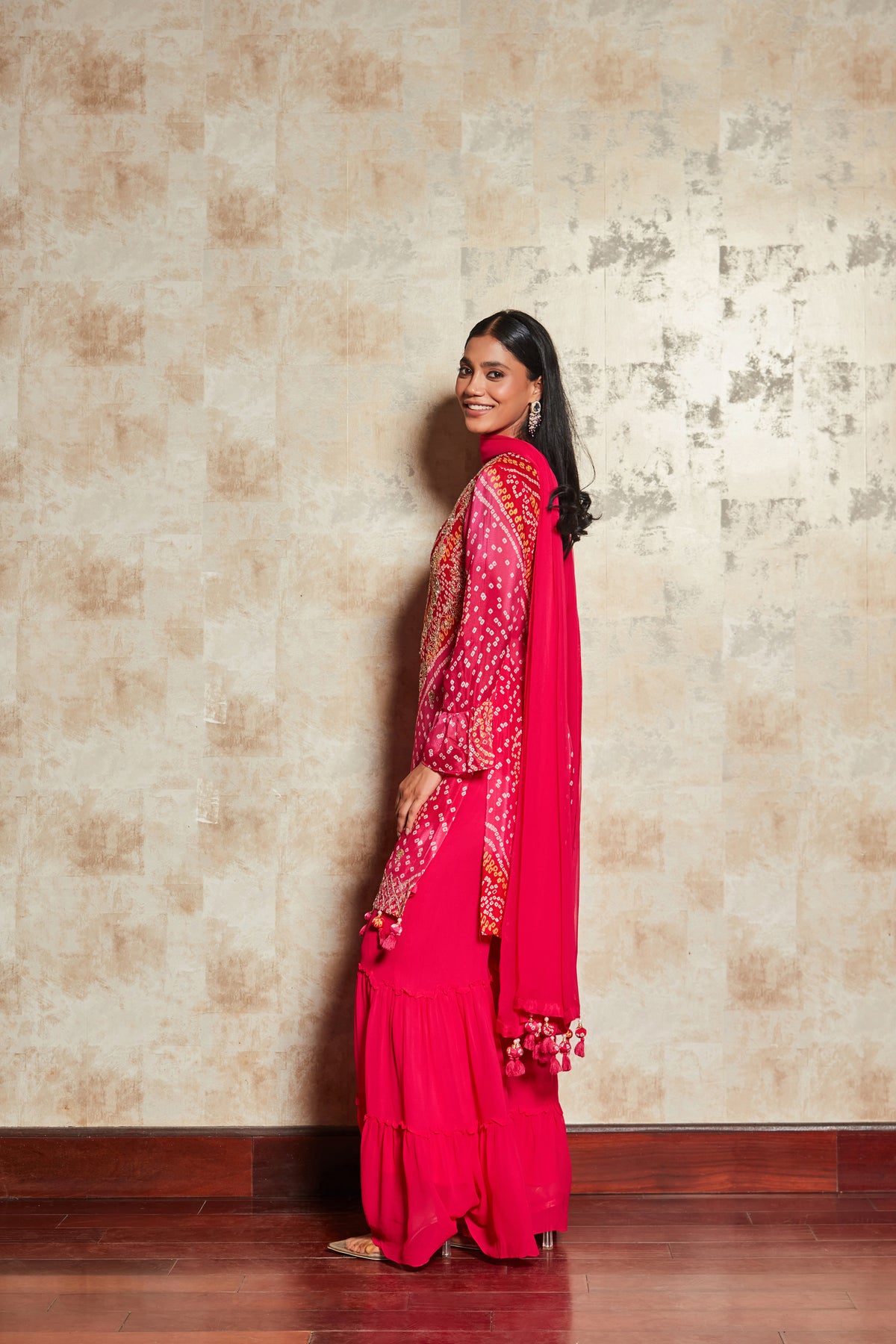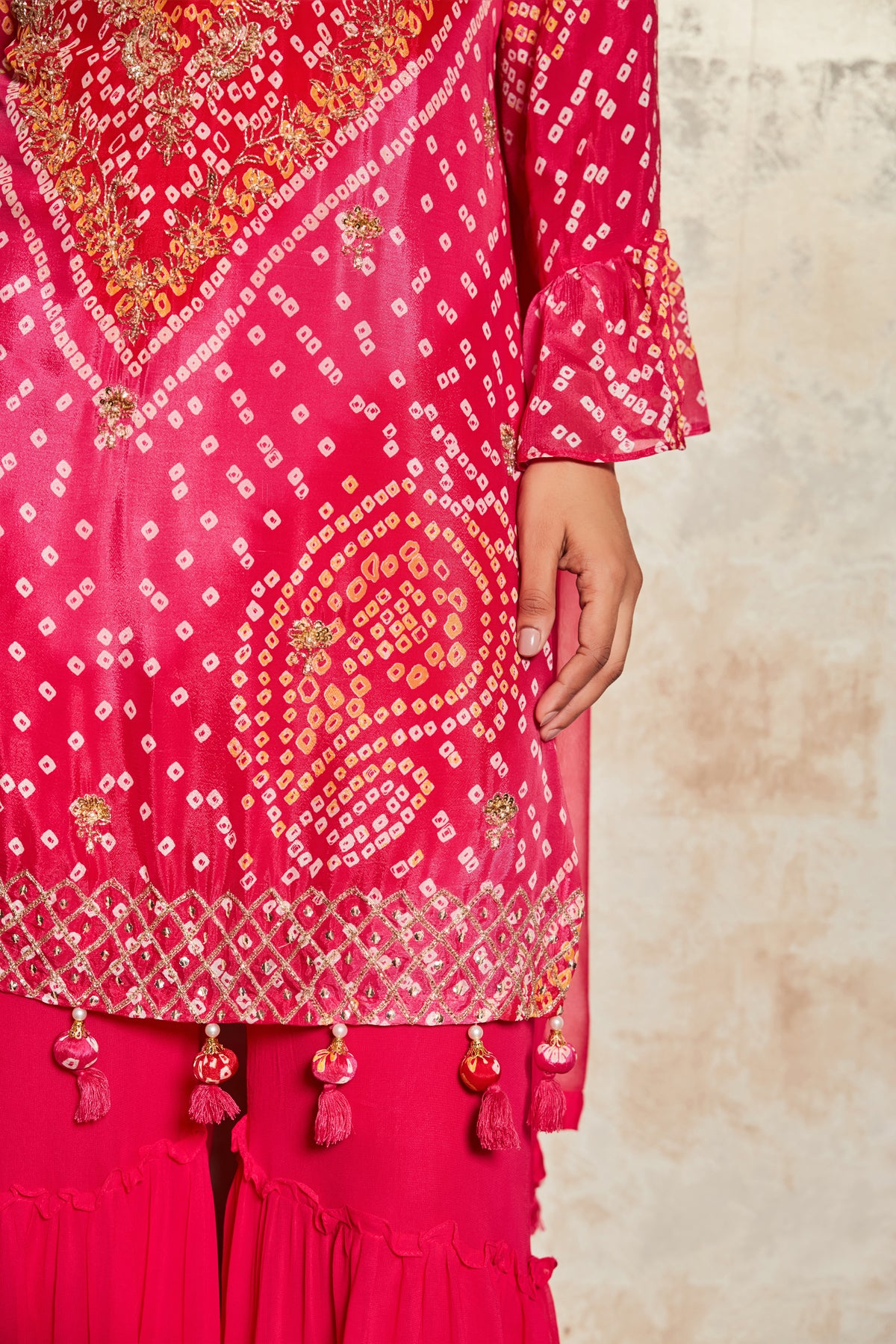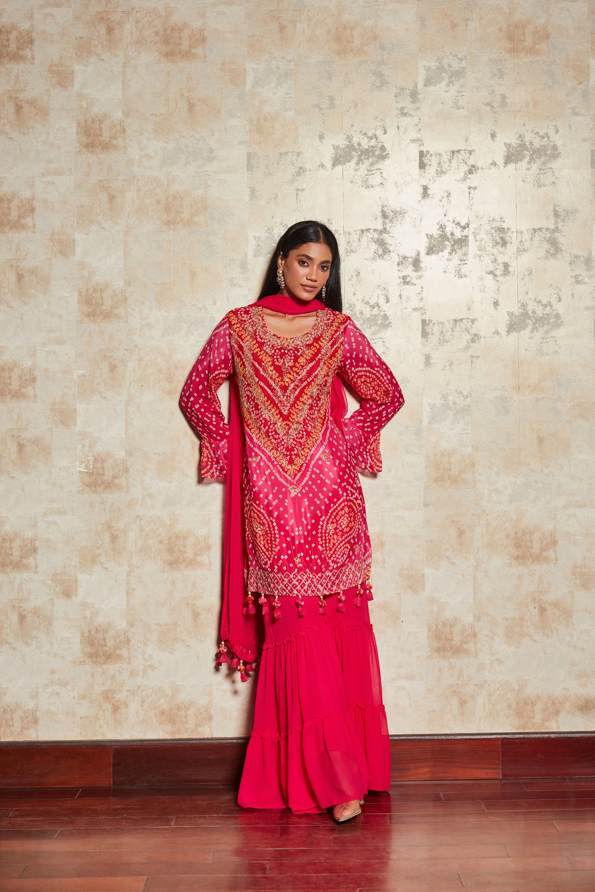 PINK BANDHANI SHARARA SET IN PURE GEORGETTE