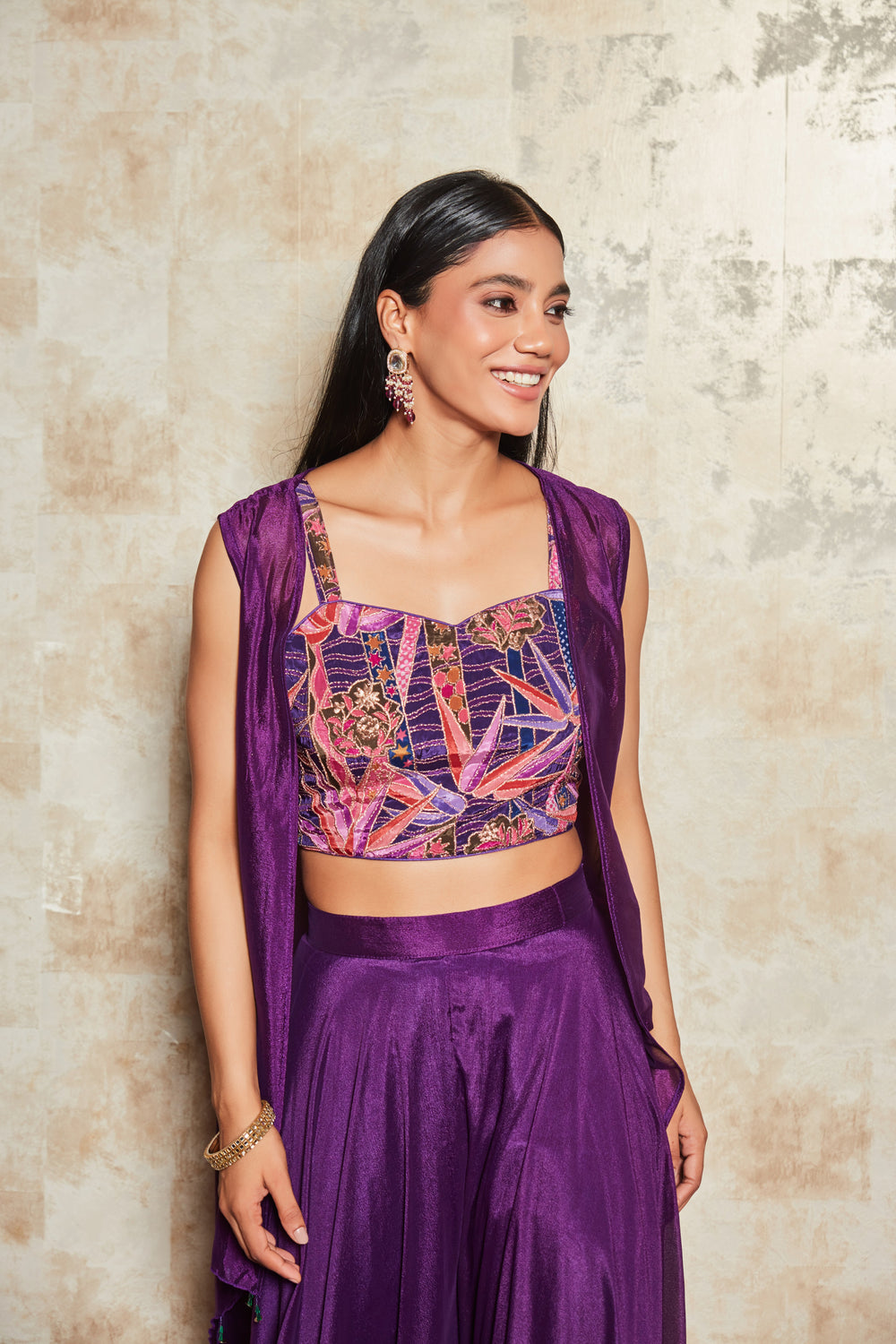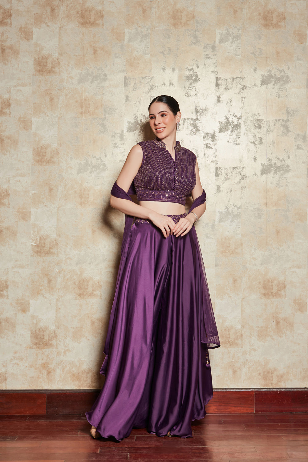 Majestic Violet Sequin Embellished Blouse and Skirt Set