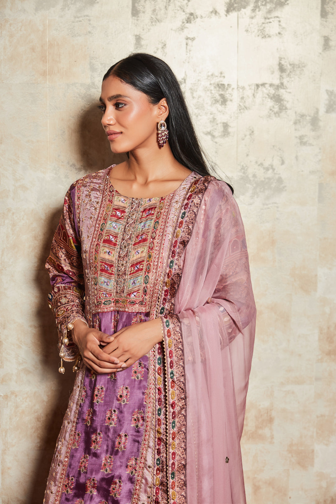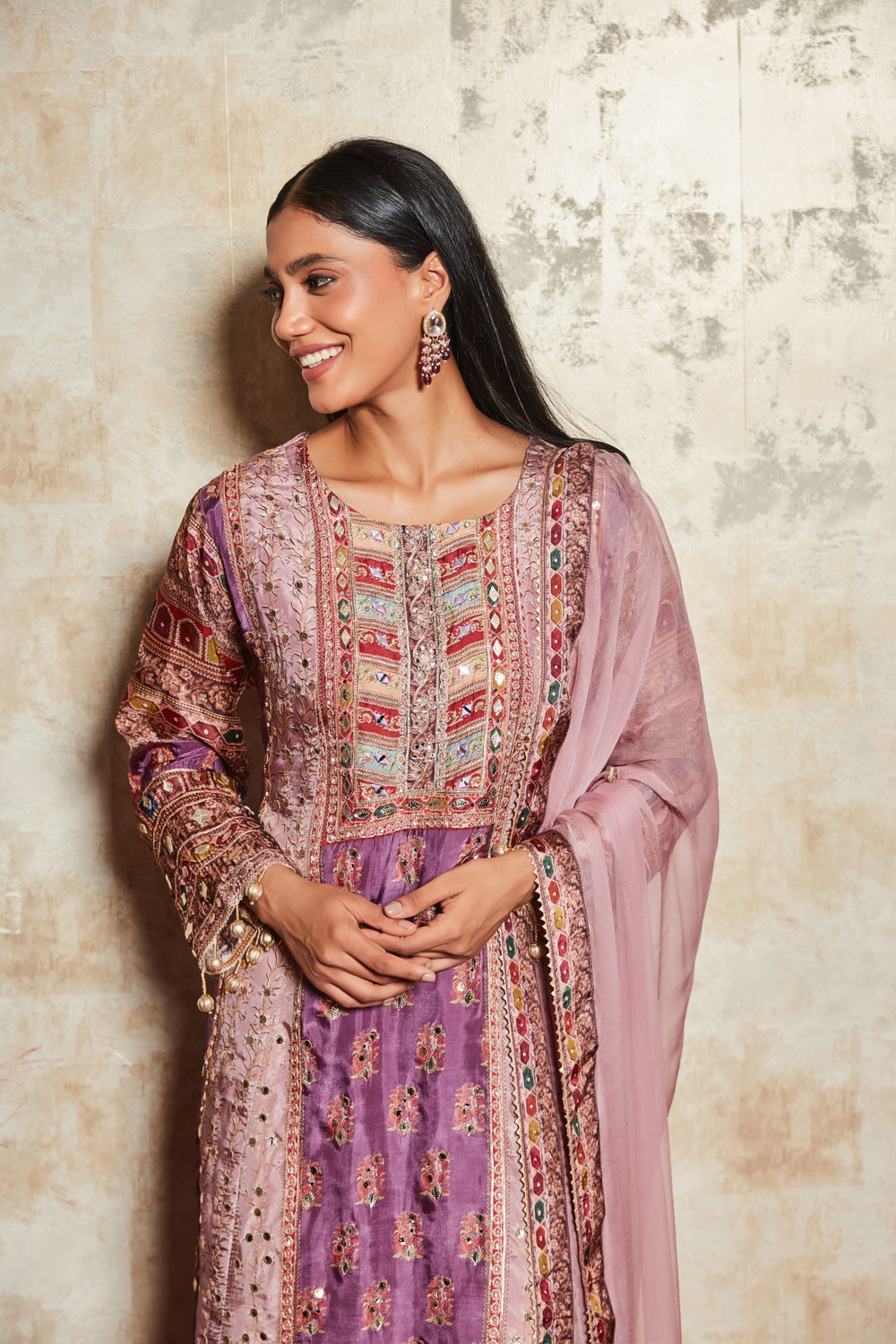 LAVENDER 3 PCS SHARARA SET WITH HAND EMBROIDERY