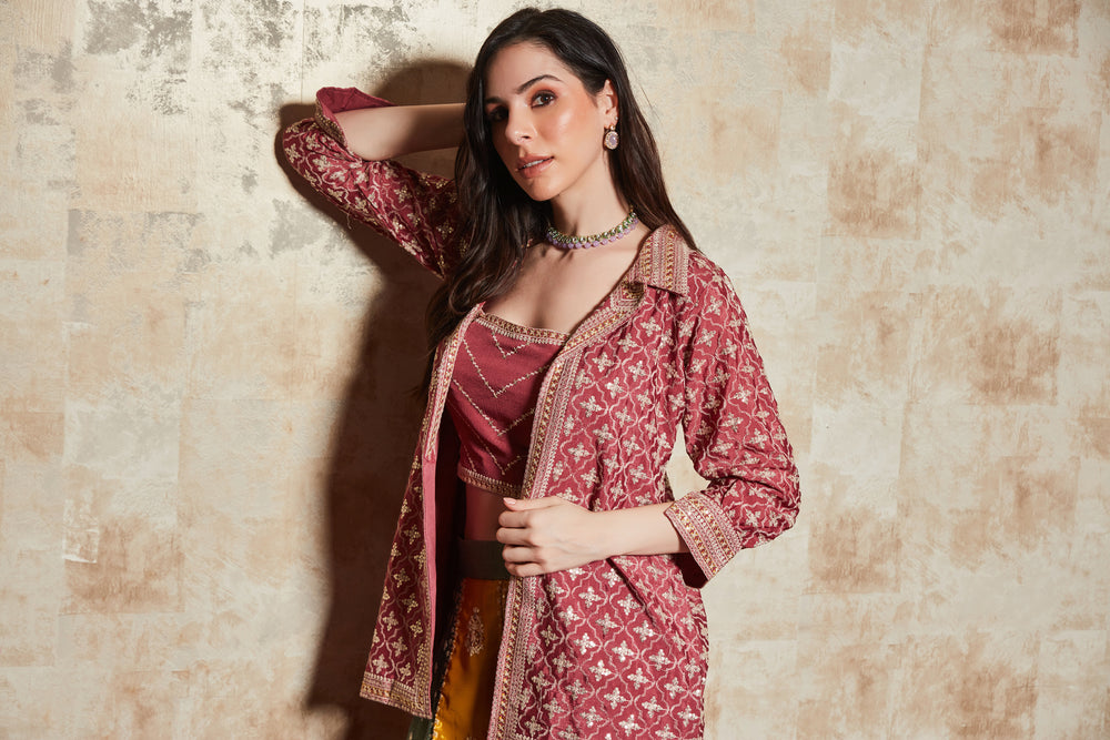 PLUM EMBELLISHED DIVIDER SET WITH SHRUG