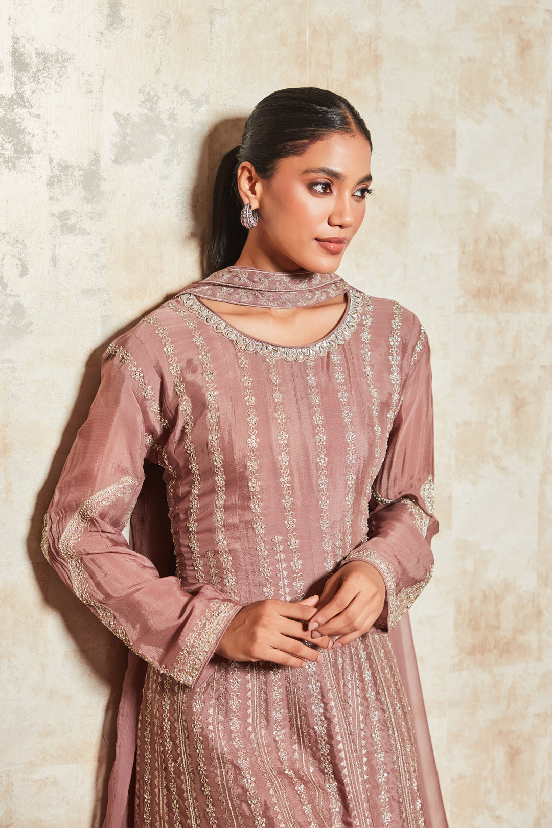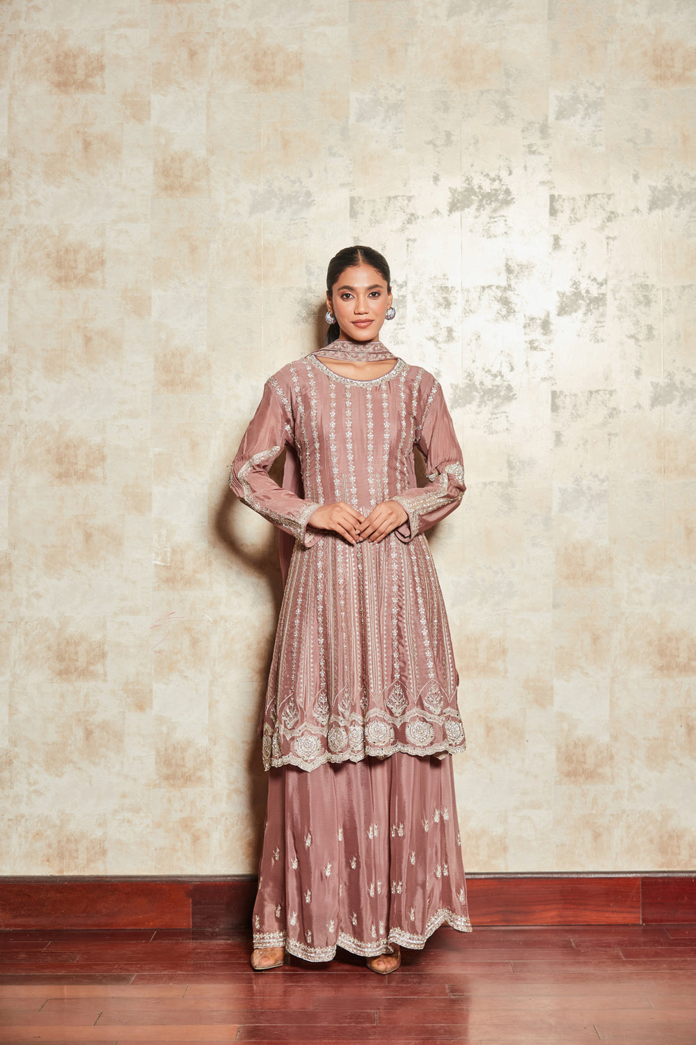RUSTY ROSE SHARARA SET WITH EMBROIDERED DUPATTA