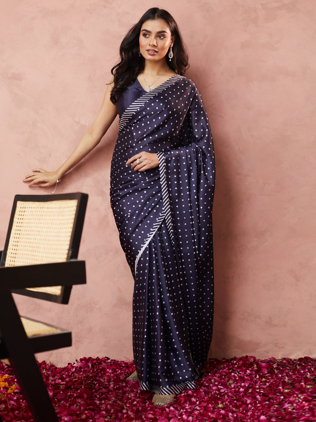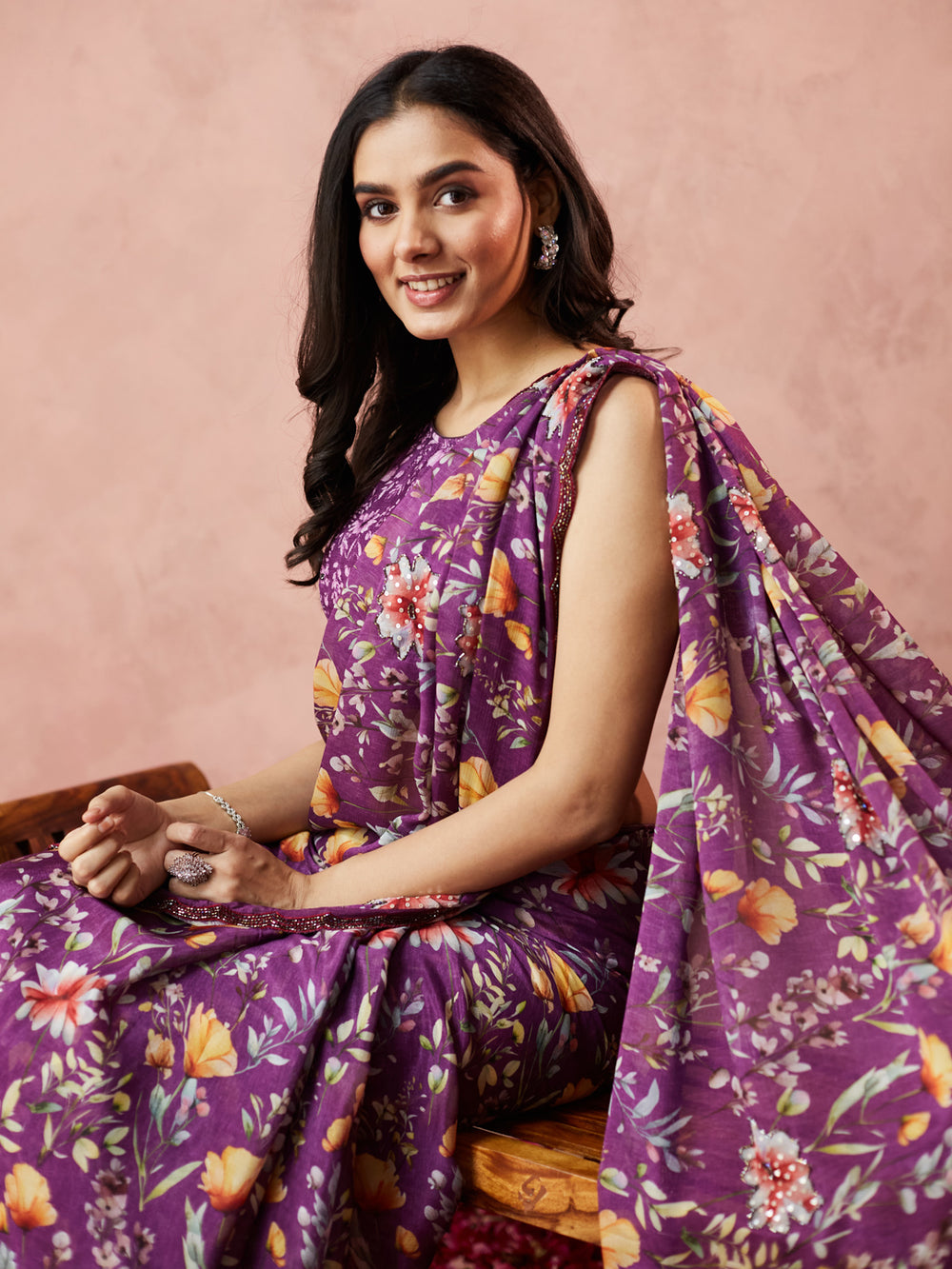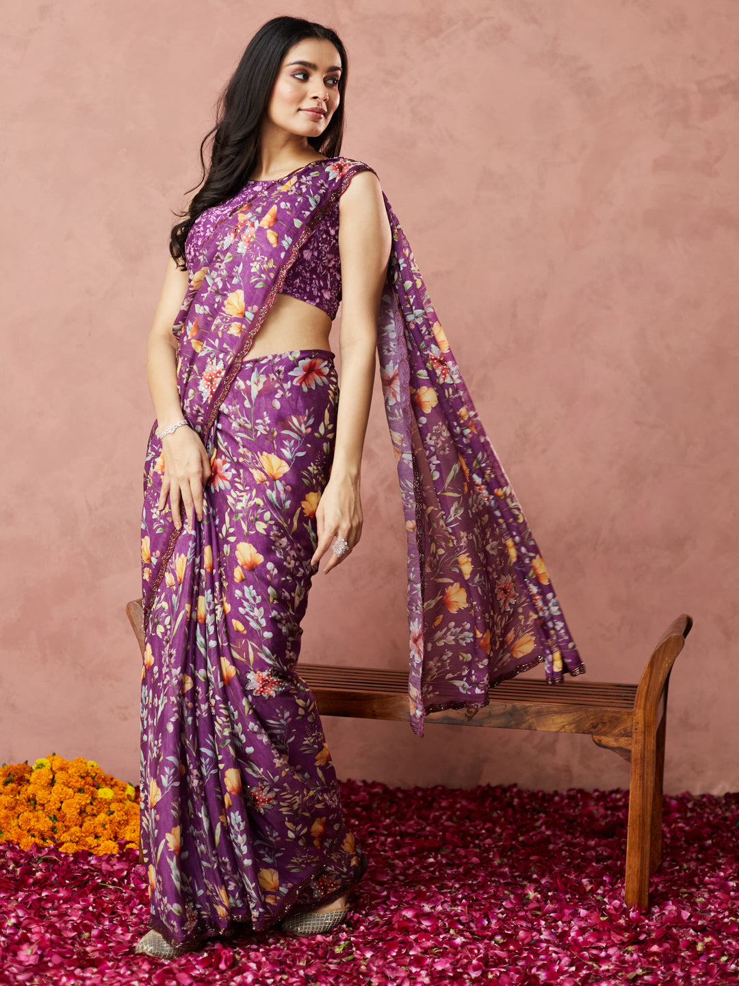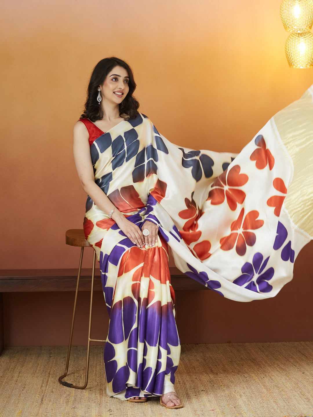 Veda Carnival Bloom Saree – Ivory with Sunset & Violet Petals