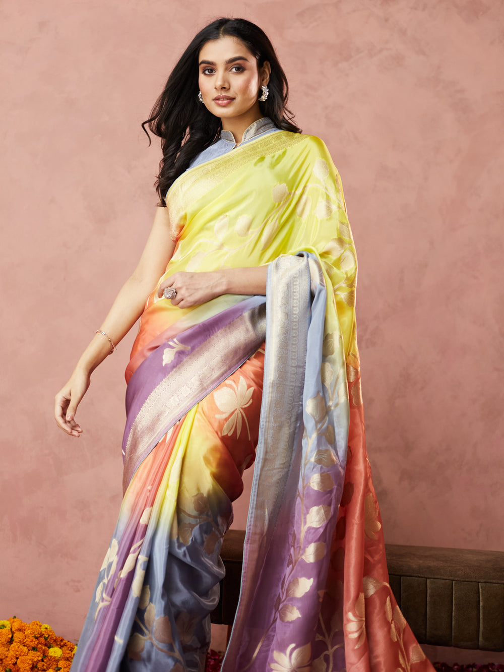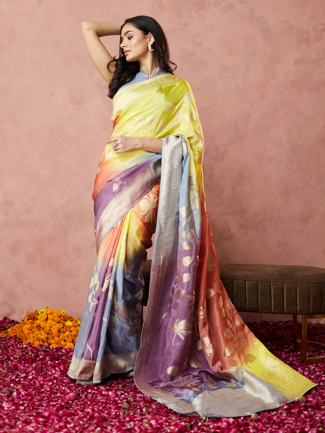 Veda Petal Pop Saree – Ivory & Sunshine Blend