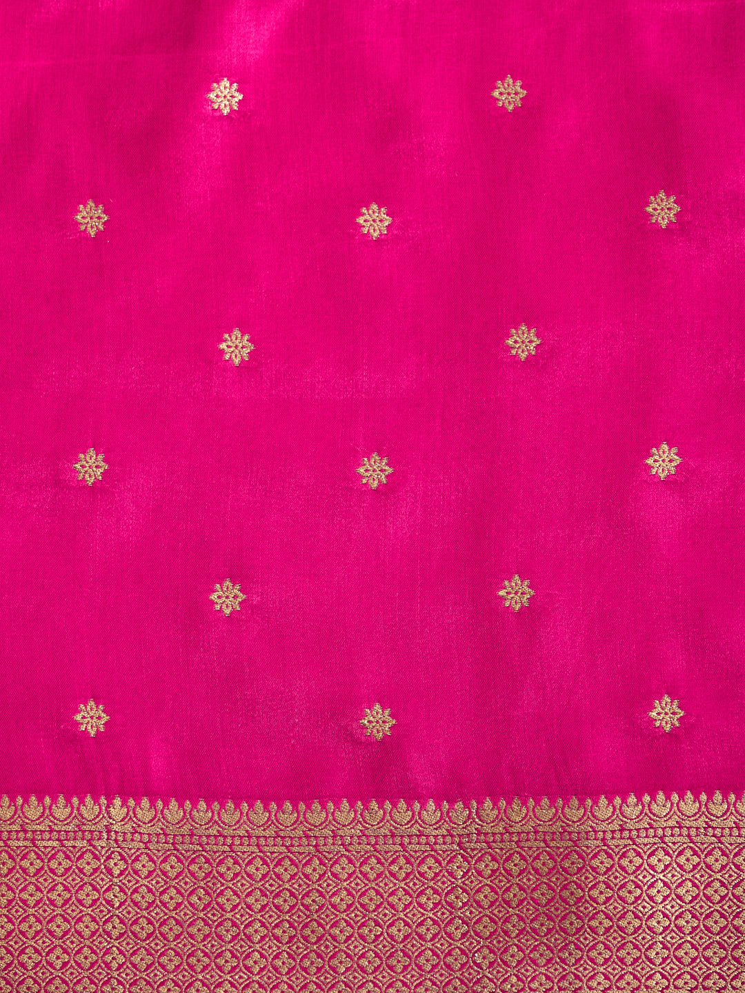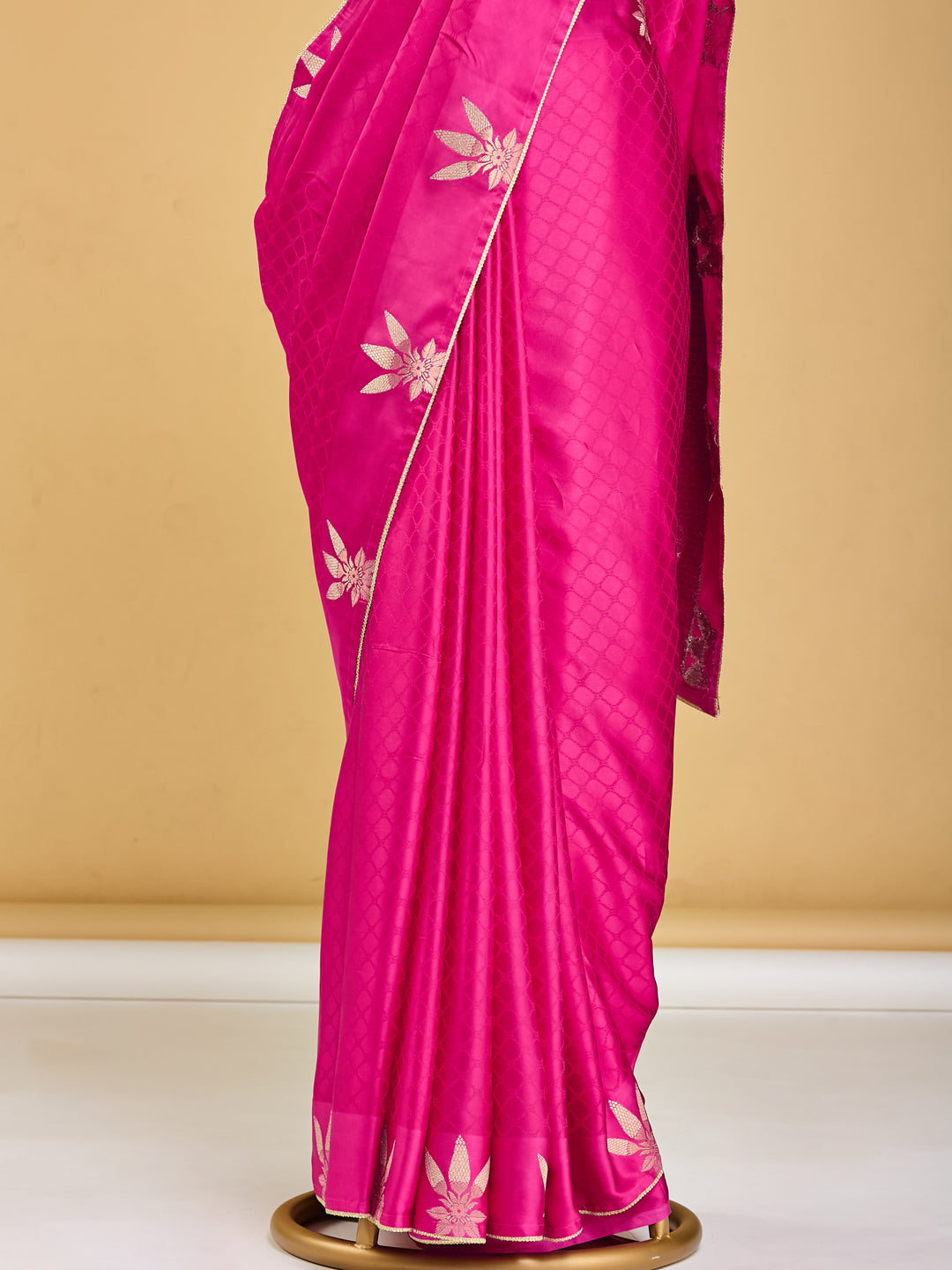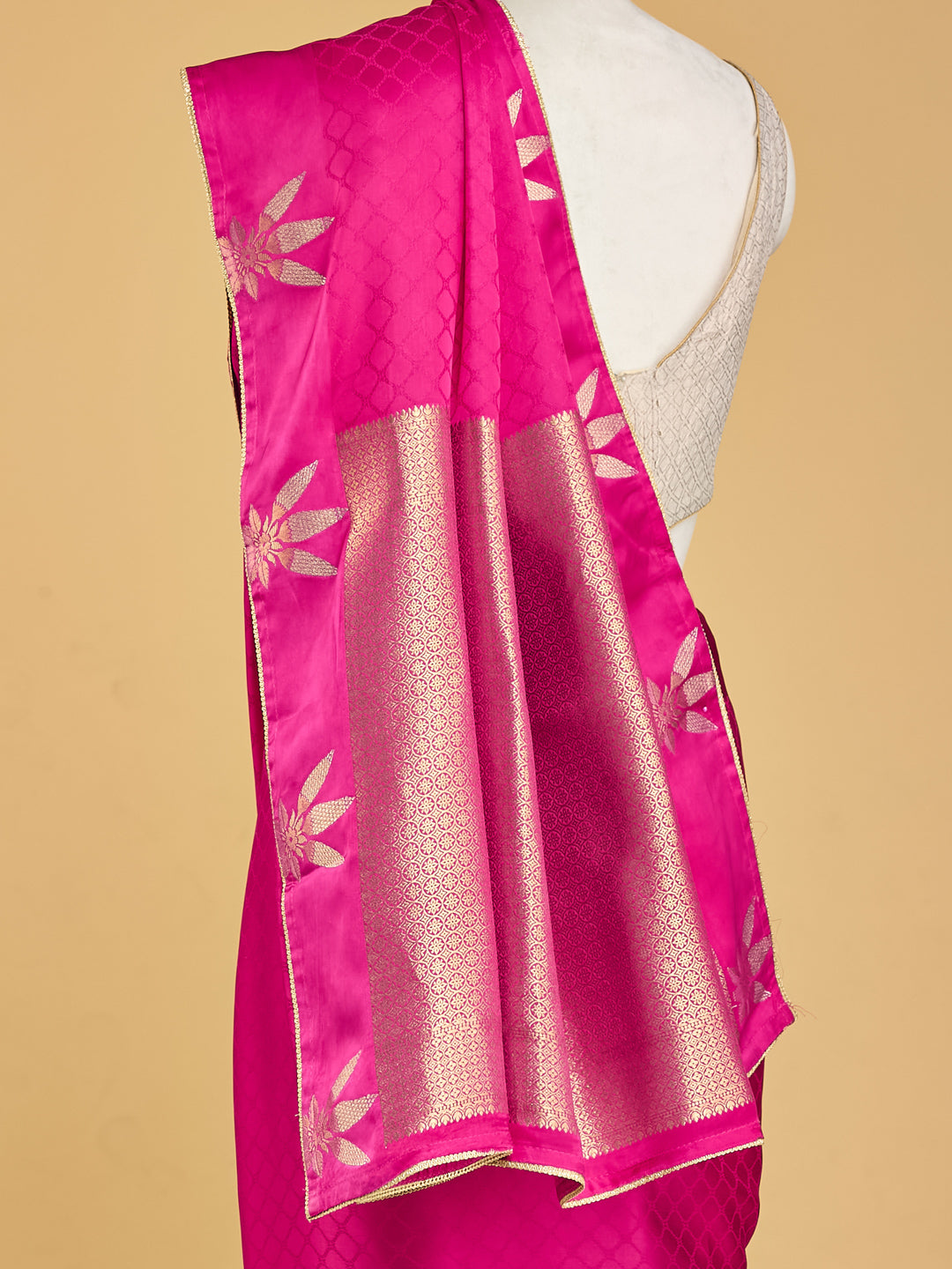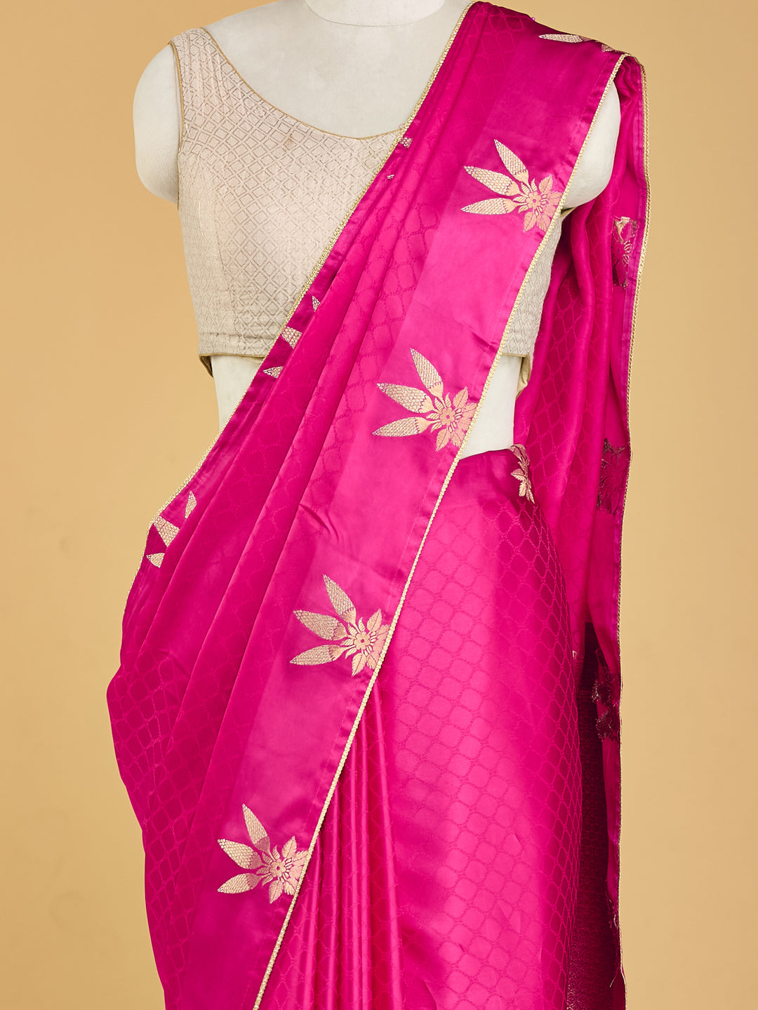 Radiant Pink Banarasi Saree with Golden Floral Motifs