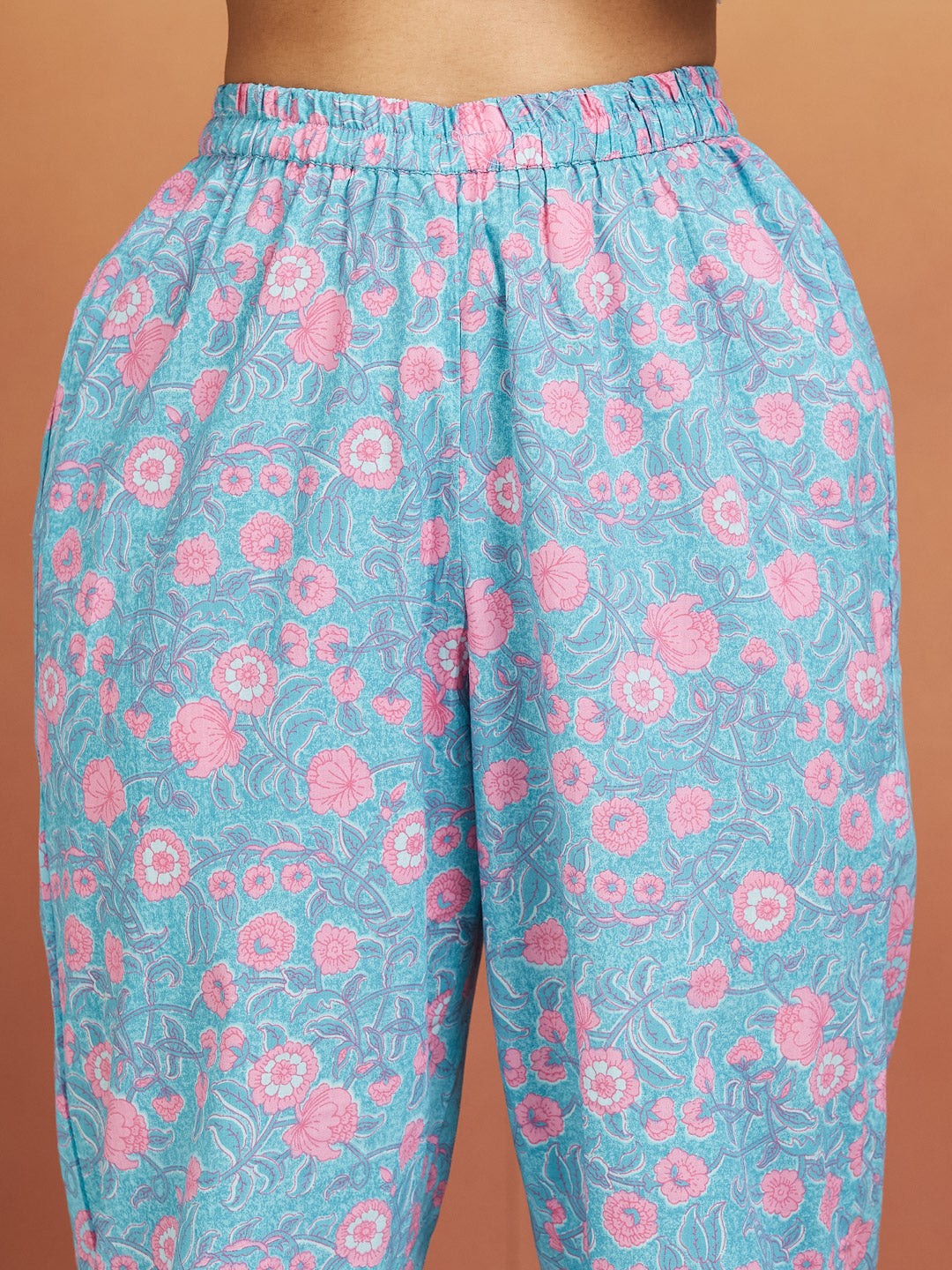 Neel Kamal Cotton Printed Kurta Set – Aqua Bloom
