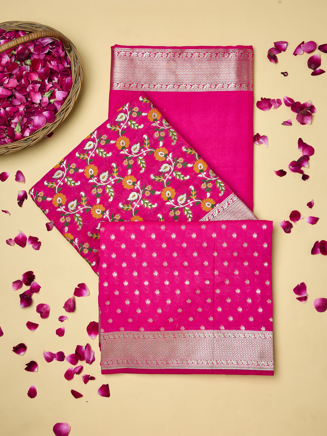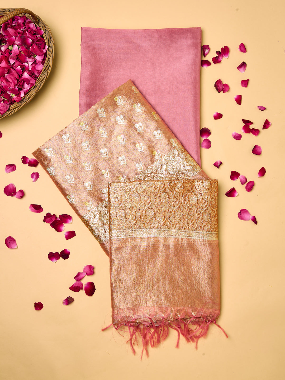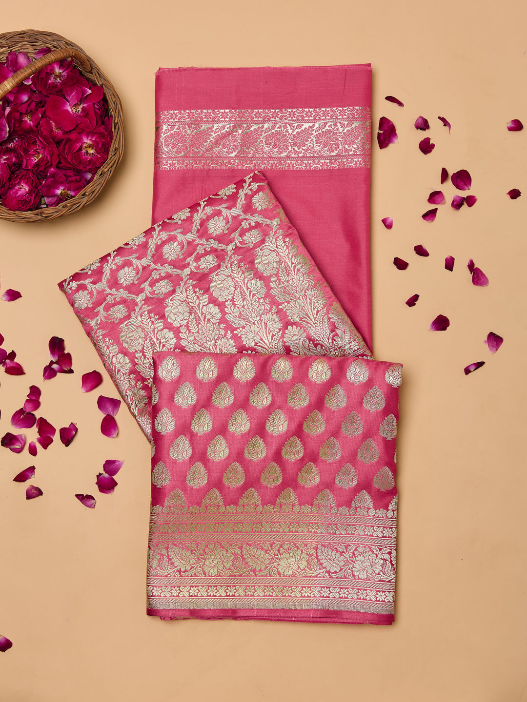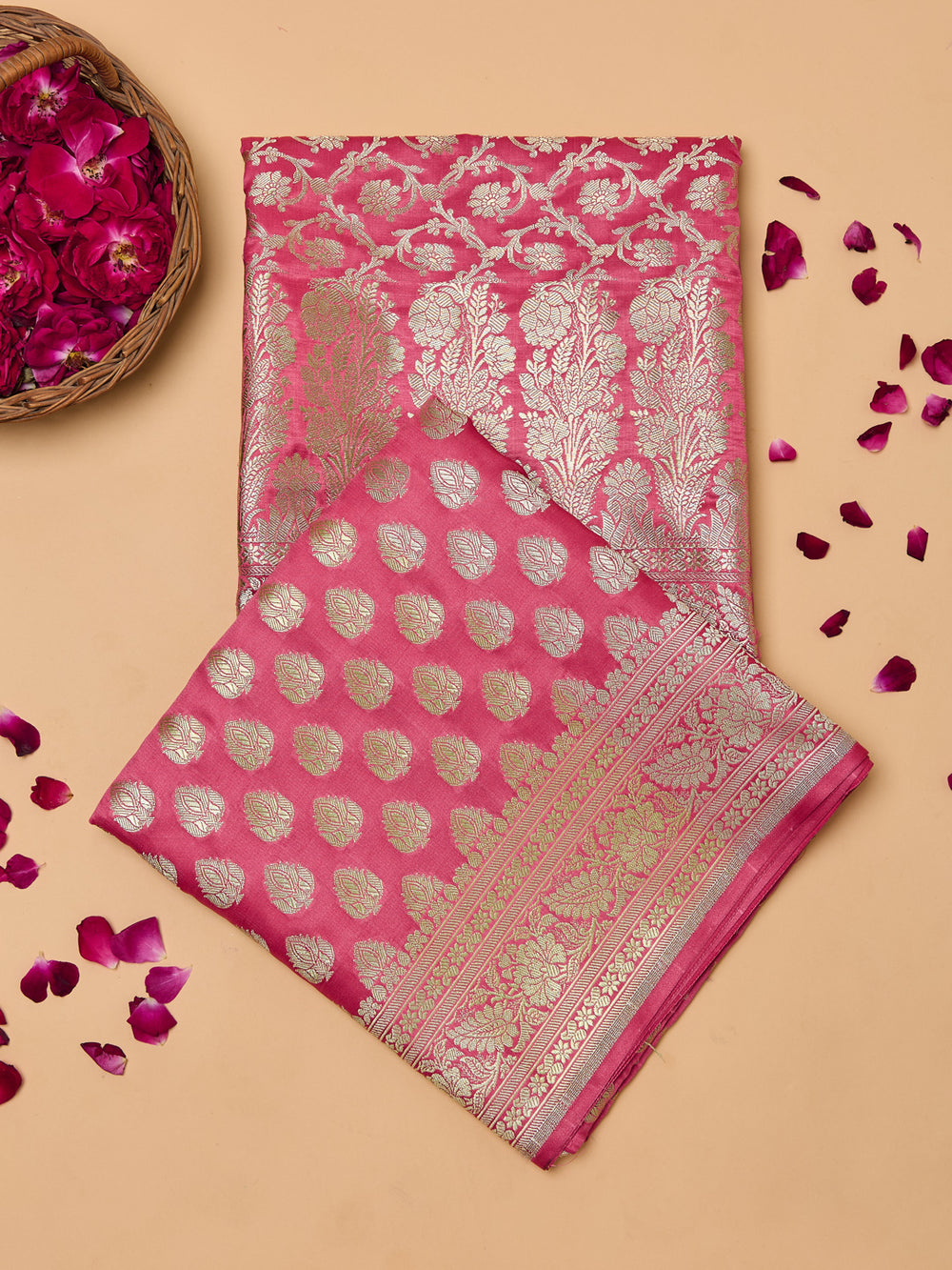 Rich Pink Banarasi Silk Suit Set with Intricate Golden Weave