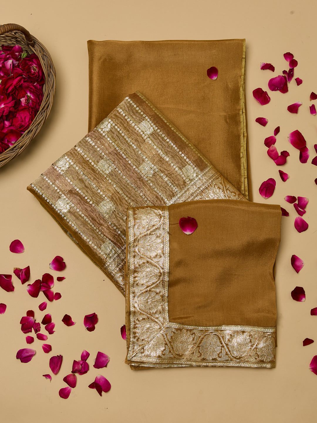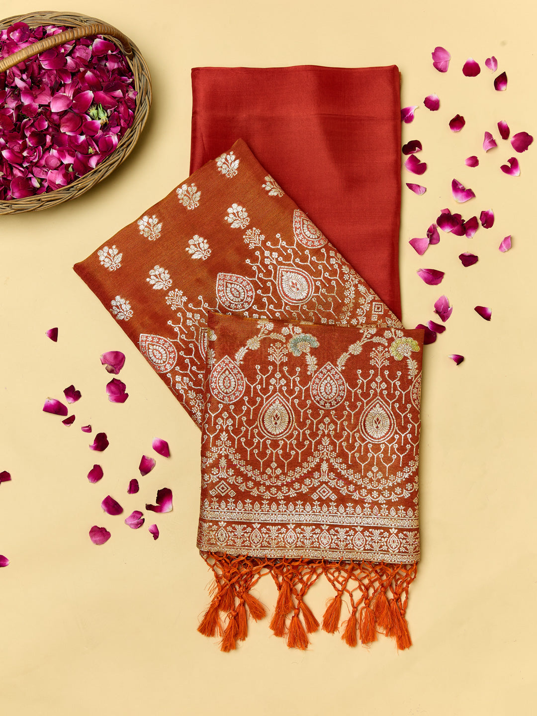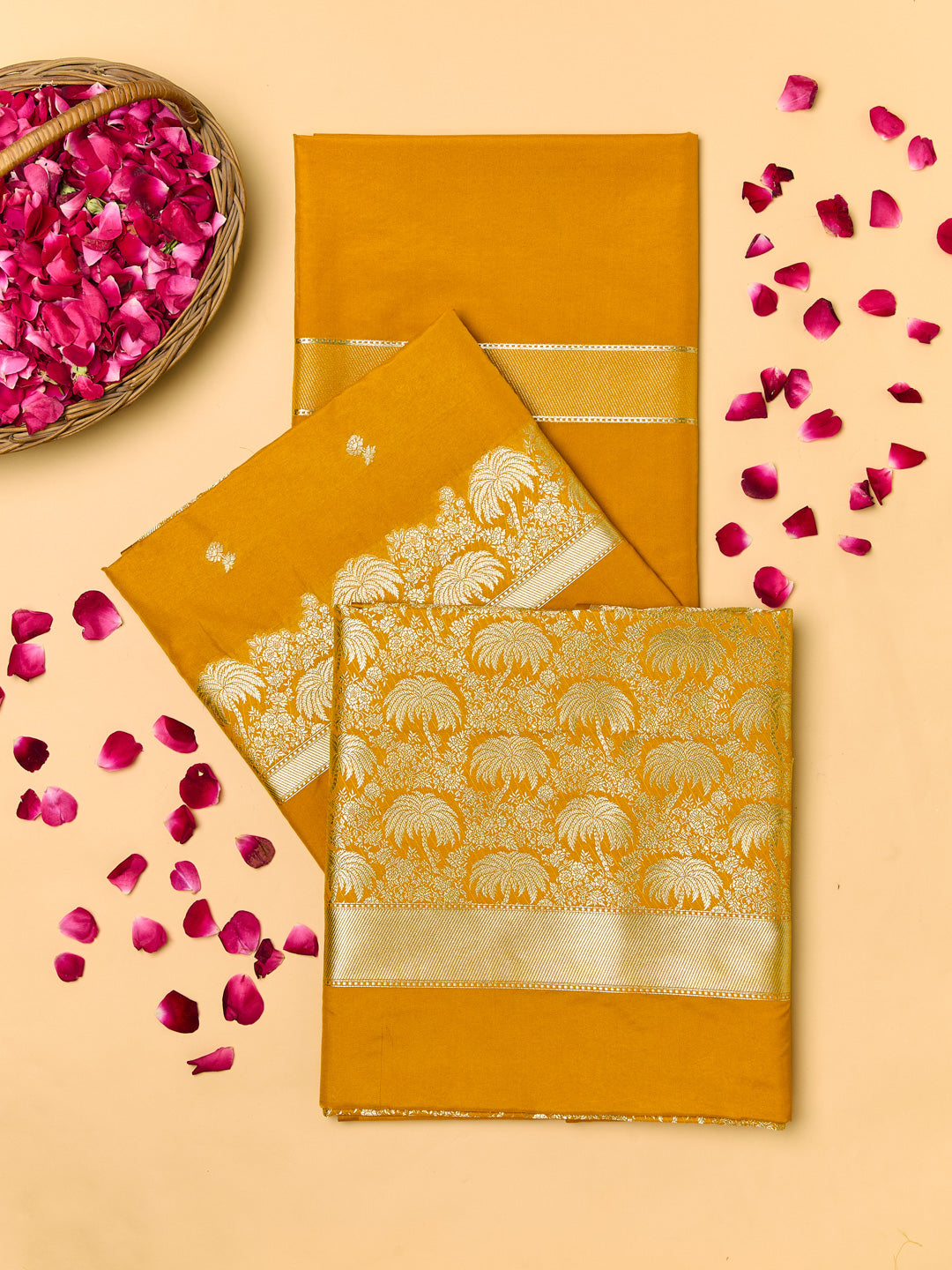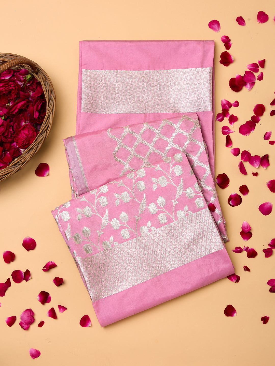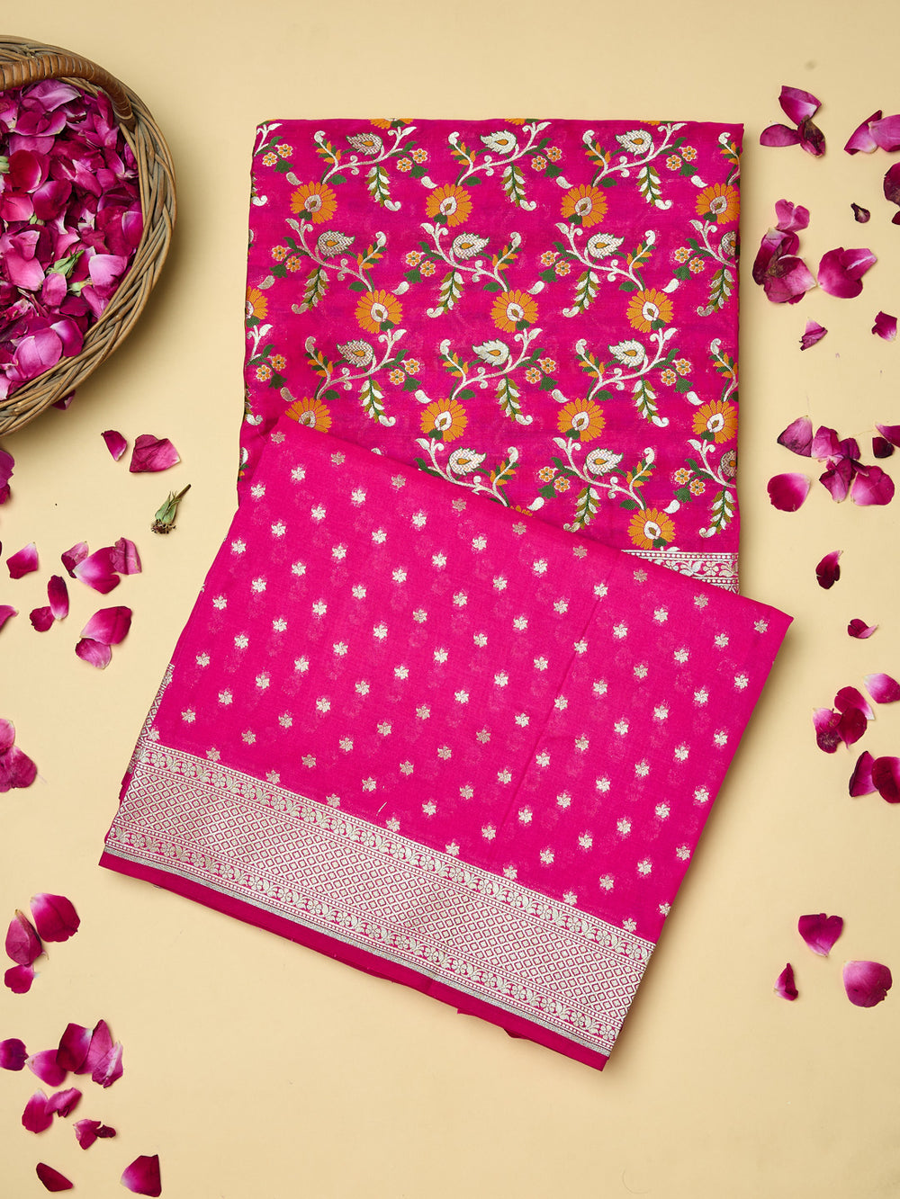 Rich Pink Banarasi Silk Suit Set with Intricate Golden Weave
