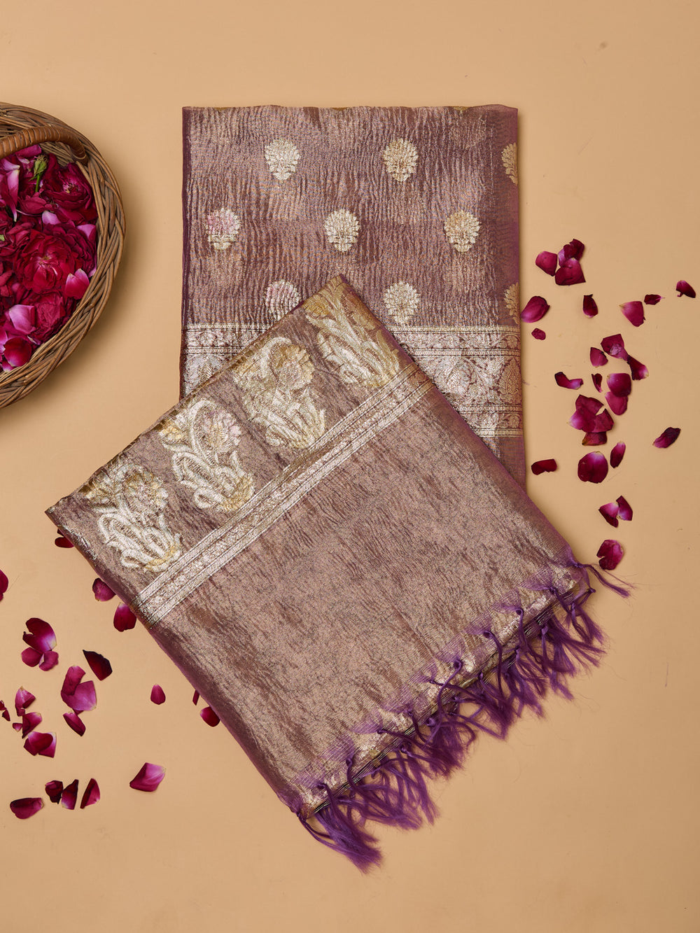 Majestic Purple Banarasi Silk Suit Set with Golden Weave