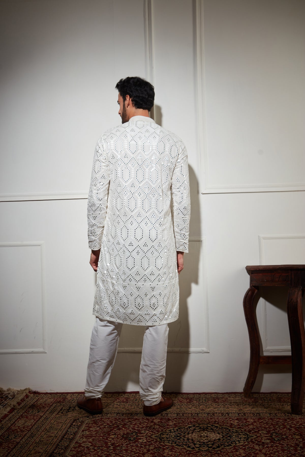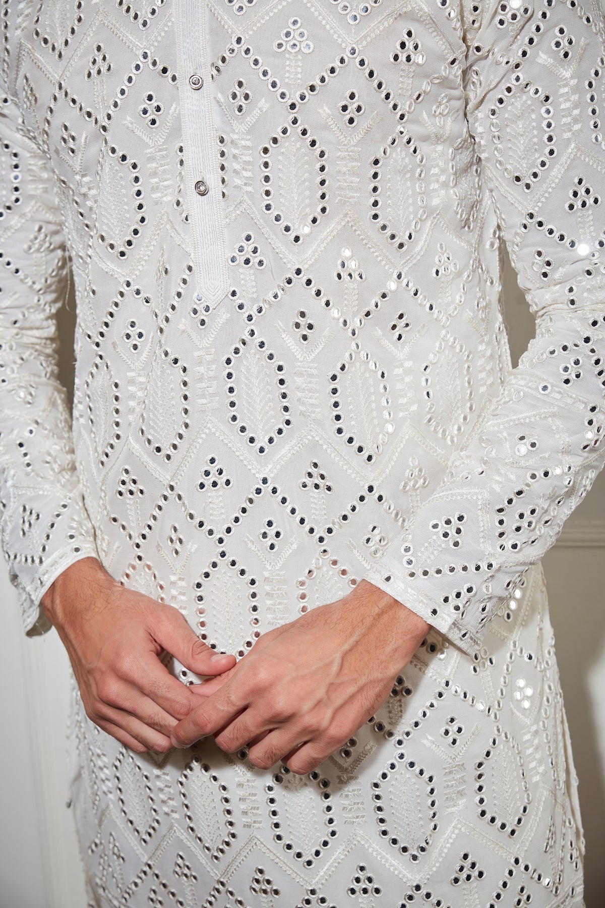 Mirror Sequence work white kurta